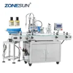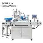 This monoblock capping machine can be used to feed caps,capping bottles and press outer cover.The reasonable design saves working space,the rotary plate can be customized according to bottle shape and size.