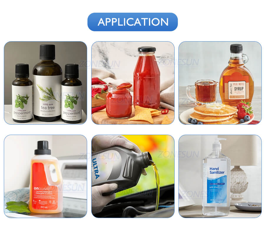 Suitable for filling liquids and semi-liquids with granules like jam, ketchup.