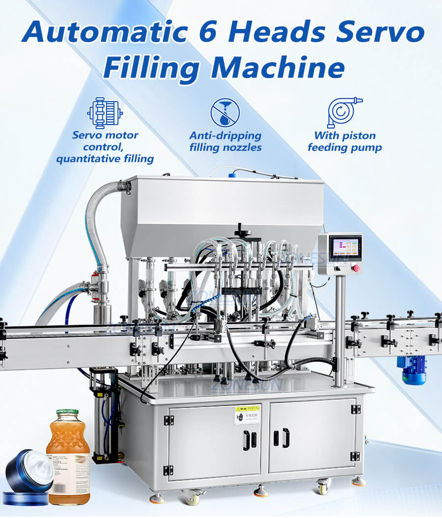 The servo filling machine can be used to fill liquid or paste by entering certain filling range.It will be more accurate and easier to operate,it also has the feeding pump which can transport filling material automatically.This machine is widely used in various industries such as daily chemical, food, cosmetics and so on.