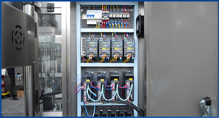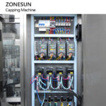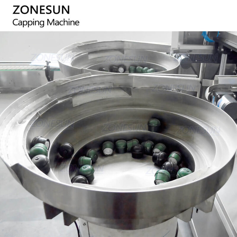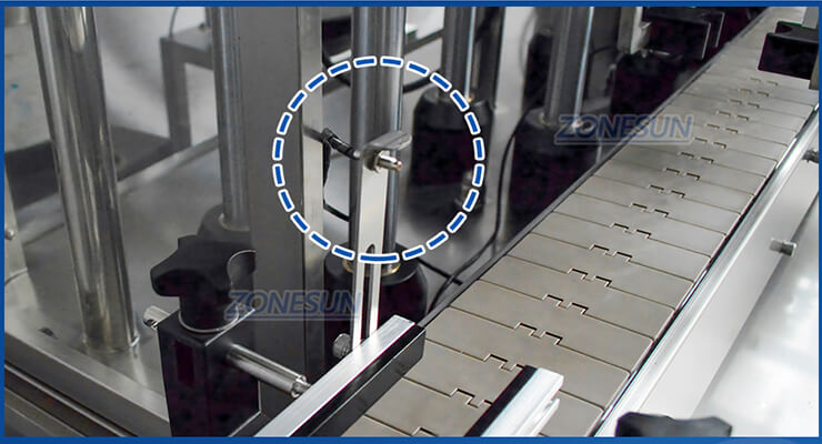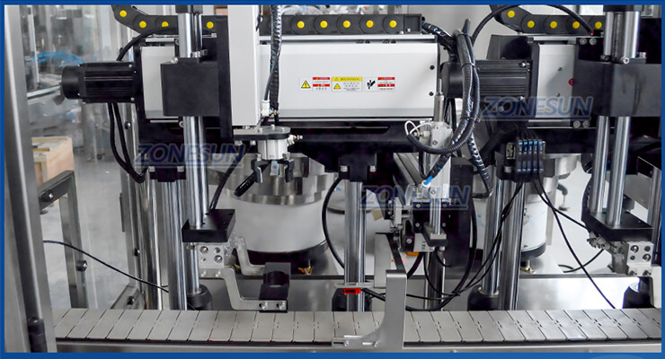 Servo motor controls capping structure to track bottles and capping, it can reach 50-80BPM.