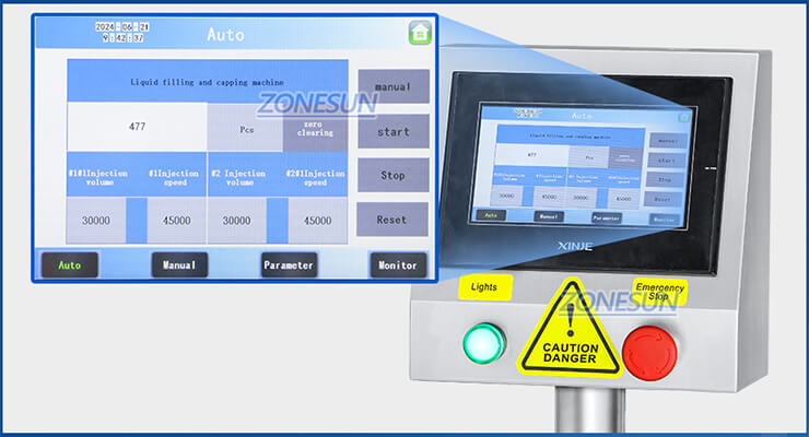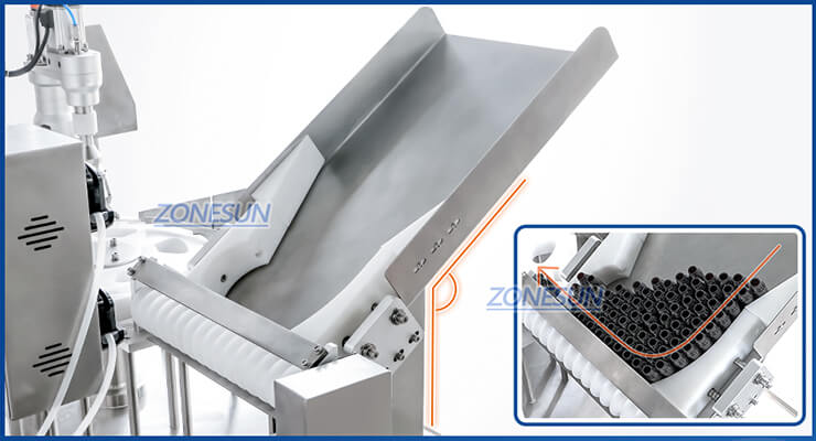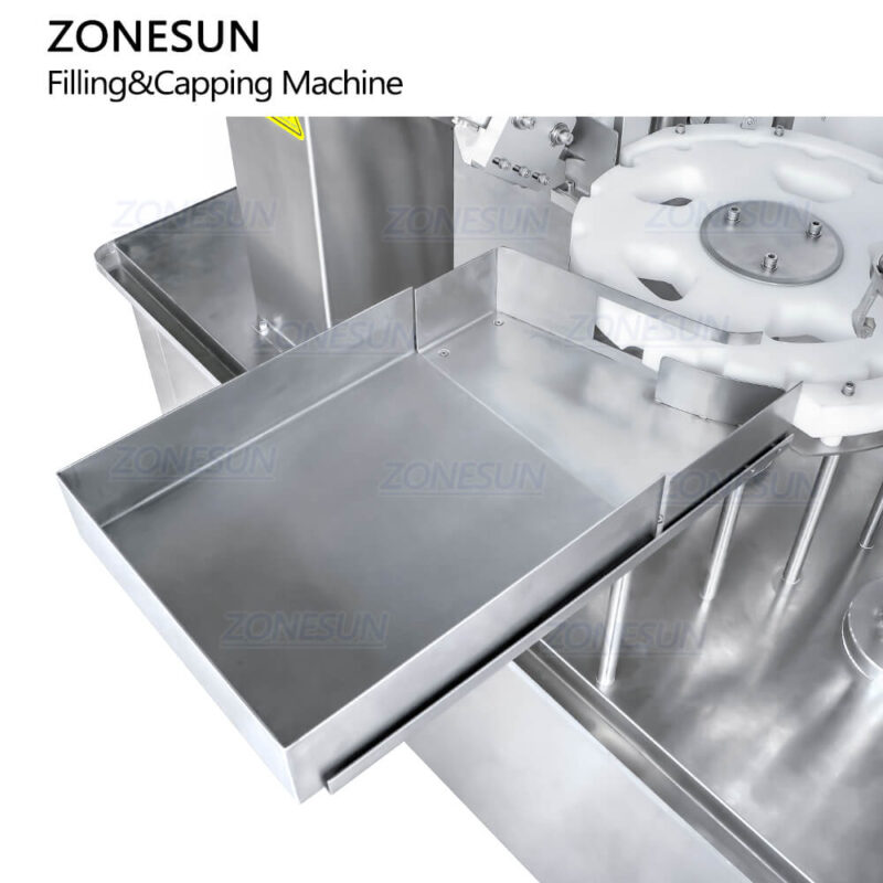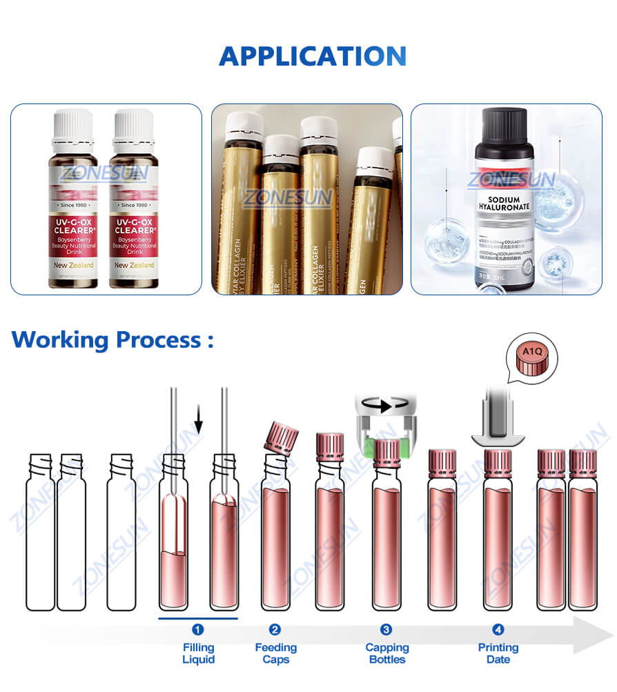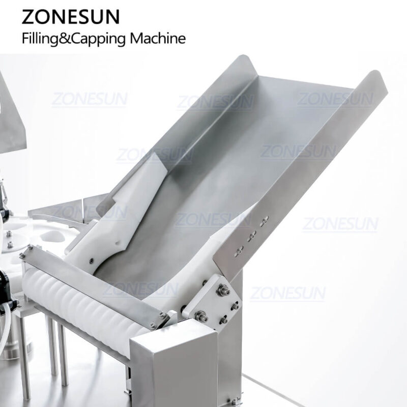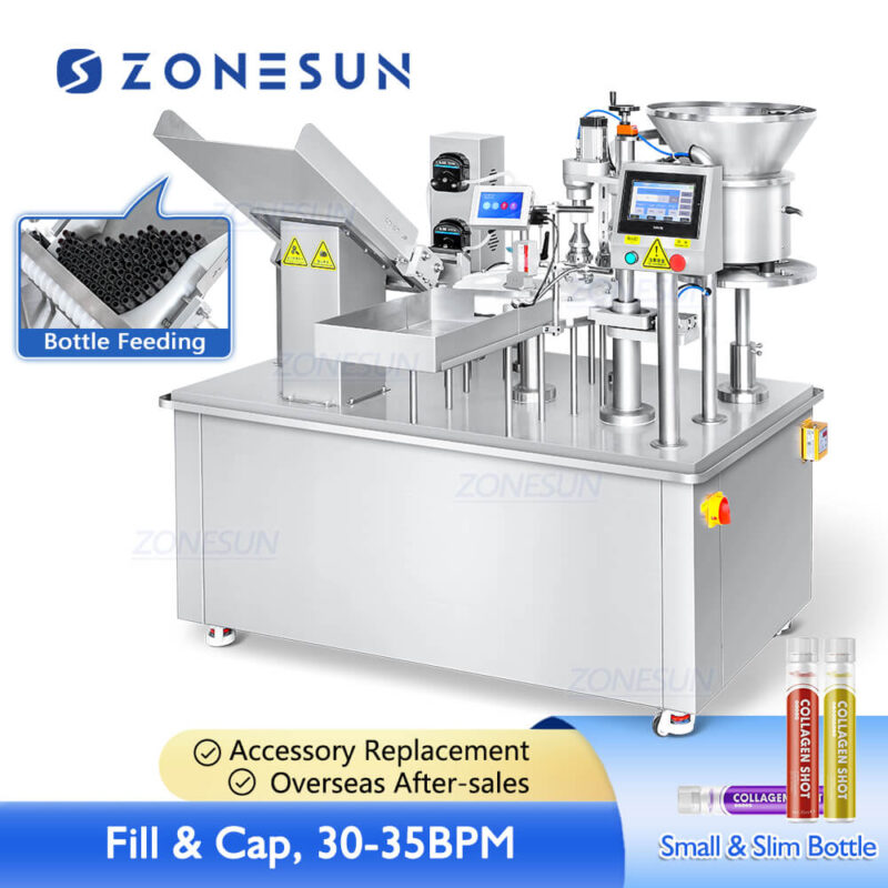 This monoblock machine combines filling and capping into a single starwheel, boasting a compact body to save workspace. Its customized bottle feeding structure is tailored for small bottles that may struggle to stand upright during filling, reducing operational errors. The peristaltic pump ensures that liquid only passes through the hose, allowing each workstation to function simultaneously, enhancing productivity.