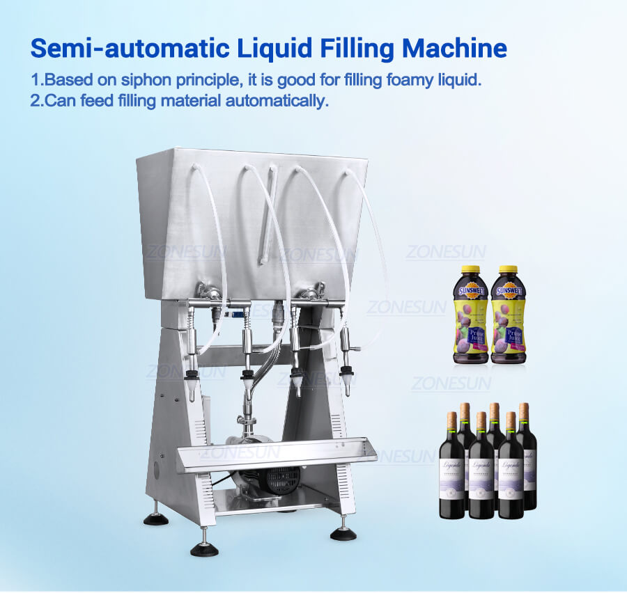 Fill liquid according to the siphon principle,it is more convenient to operate the machine,multiple filling nozzles can be customized as production need.