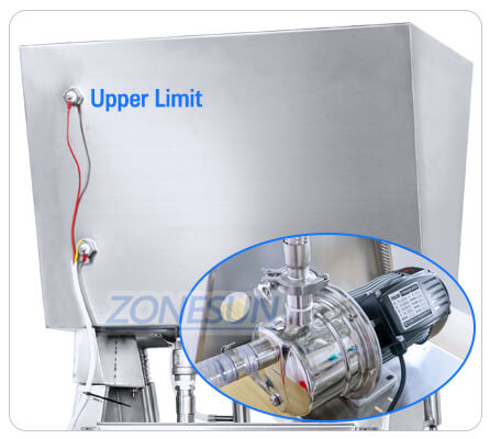 This machine can feed filling material automatically,when the filling material inside hopper reach lower limit,the feeding pump will start to feed material. When the filling material reach upper limit, the feeding pump will stop to work.