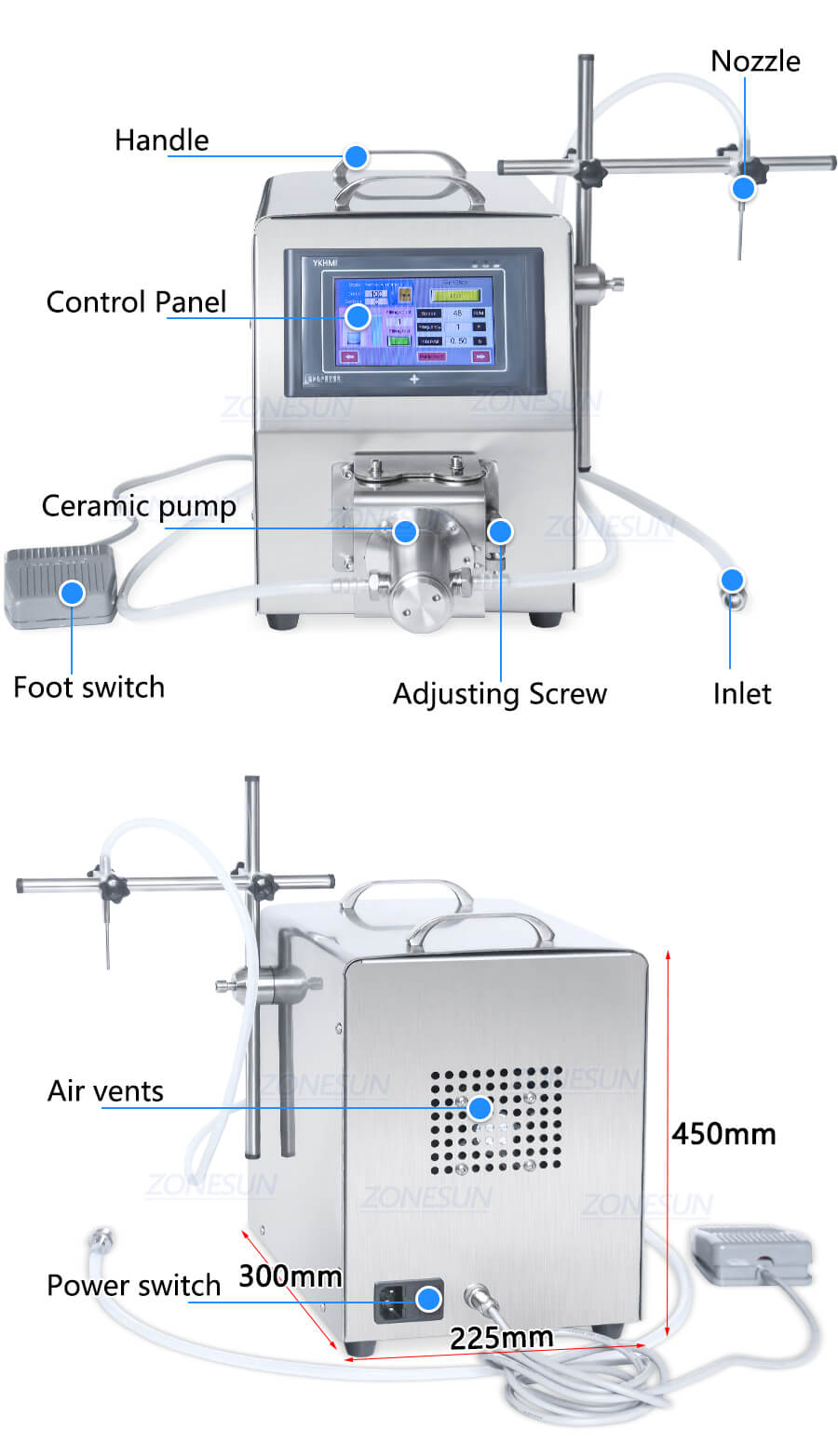Ceramic pump, 0.2-2.8 ml every time, high accuracy.
