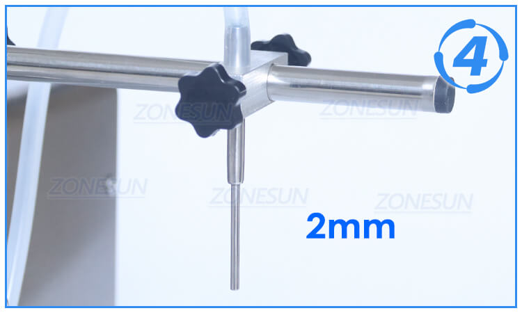 The small filling nozzle makes it suitable for small dose filing. Its working height can be adjusted.