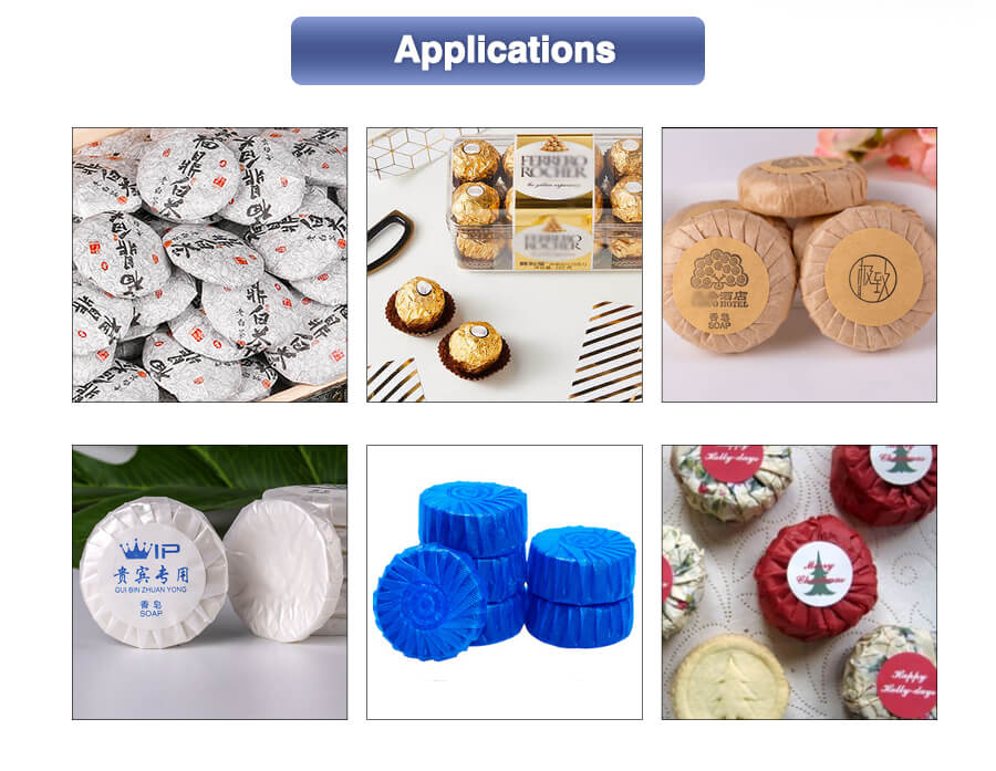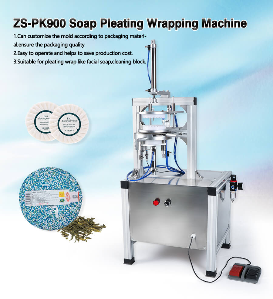This semi automatic packaging machine is suitable for different sizes of round products like hotel soap,toilet cleaning block,tea or chocolate.The pleating wrapping method can offer you more beautiful packaging appearance,lower packaging cost and higher efficiency.The packaging mold can be customized according to your packaging product size.