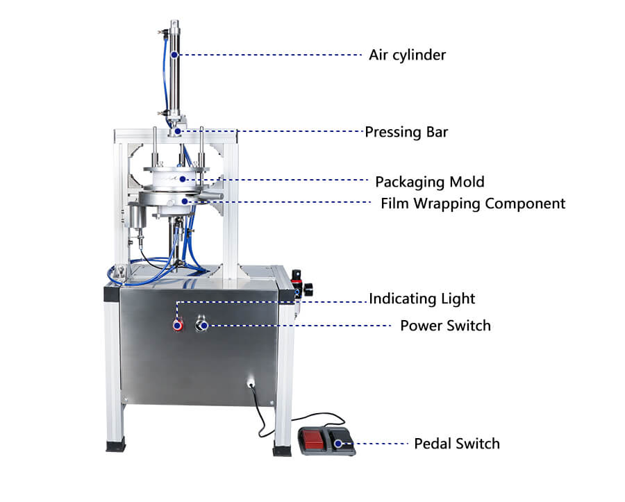 Pull the handle to finish the pleating packaging,the film wrapping component is easy to operate and offer more beautiful appearance,lower production cost and higher efficiency.