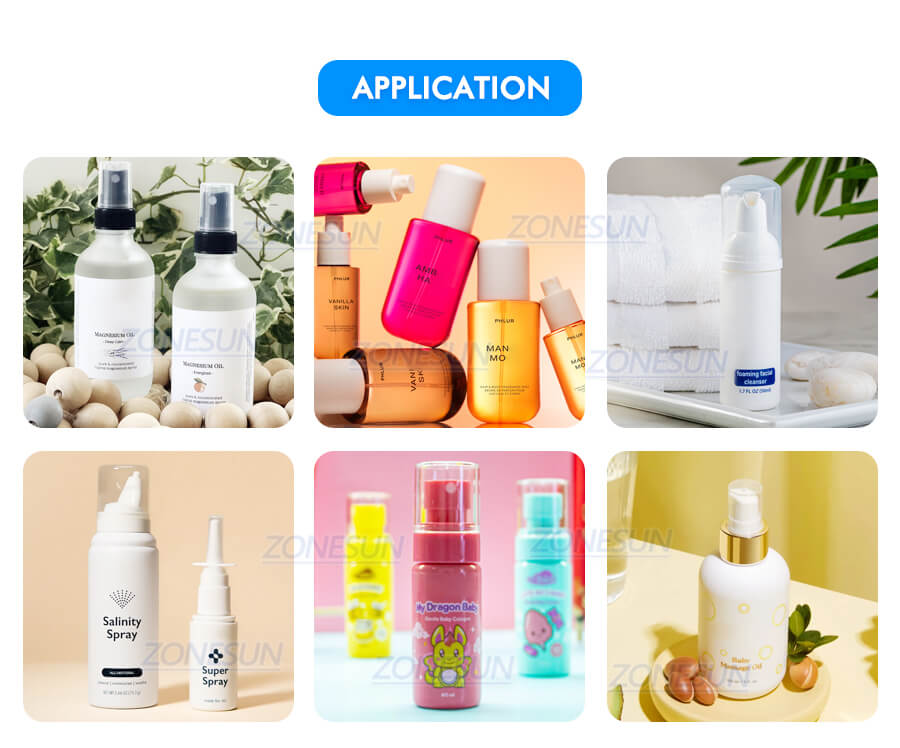 This capper machine has two working structure, one for screwing caps, one for pressing outer covers,it can connect with tabletop filling machine and labeling machine to realize automated small scale production of spray bottles.