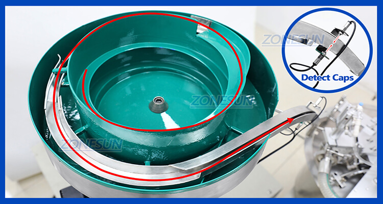 Makes caps be in order and can be fed onto pouches smoothly, it saves working labor.