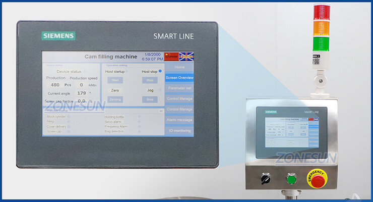 Cam system controls filling, capping work at the same time, it can reach 30BPM, high working capacity.
