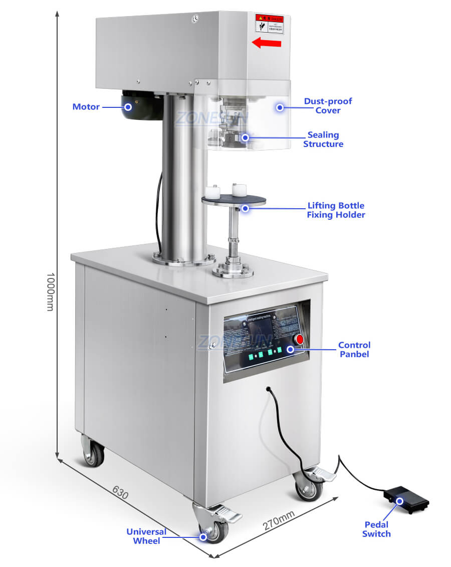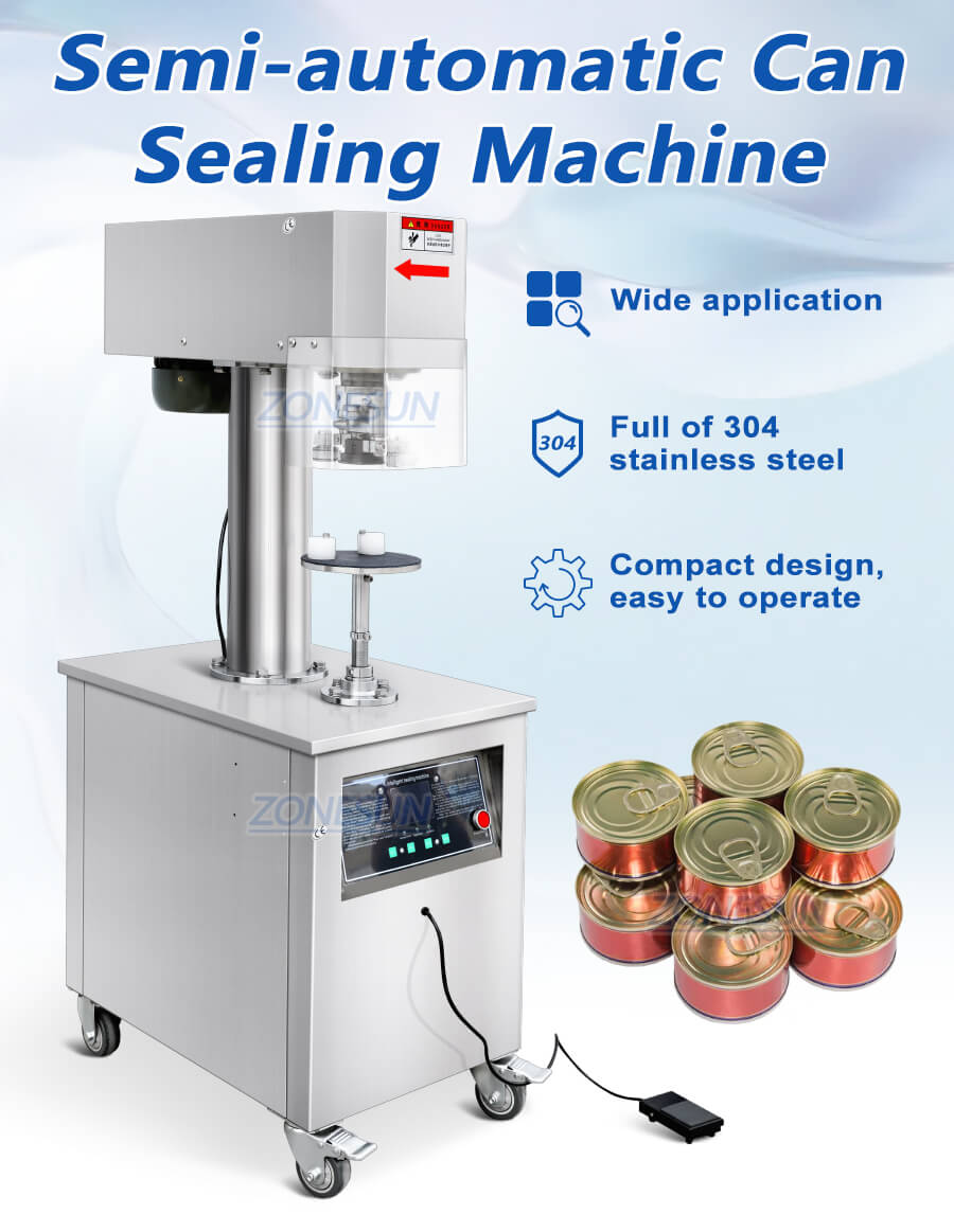 This vertical can sealing machine utilizes rotating rollers to seal cans while keeping the cans stationary during the process, ensuring consistent sealing quality. It accommodates various round can types, including aluminum, plastic, and paper cans. Equipped with a pedal switch, the machine offers effortless and convenient operation. Ideal for packaging applications across the food, beverage, chemical, and related industries.