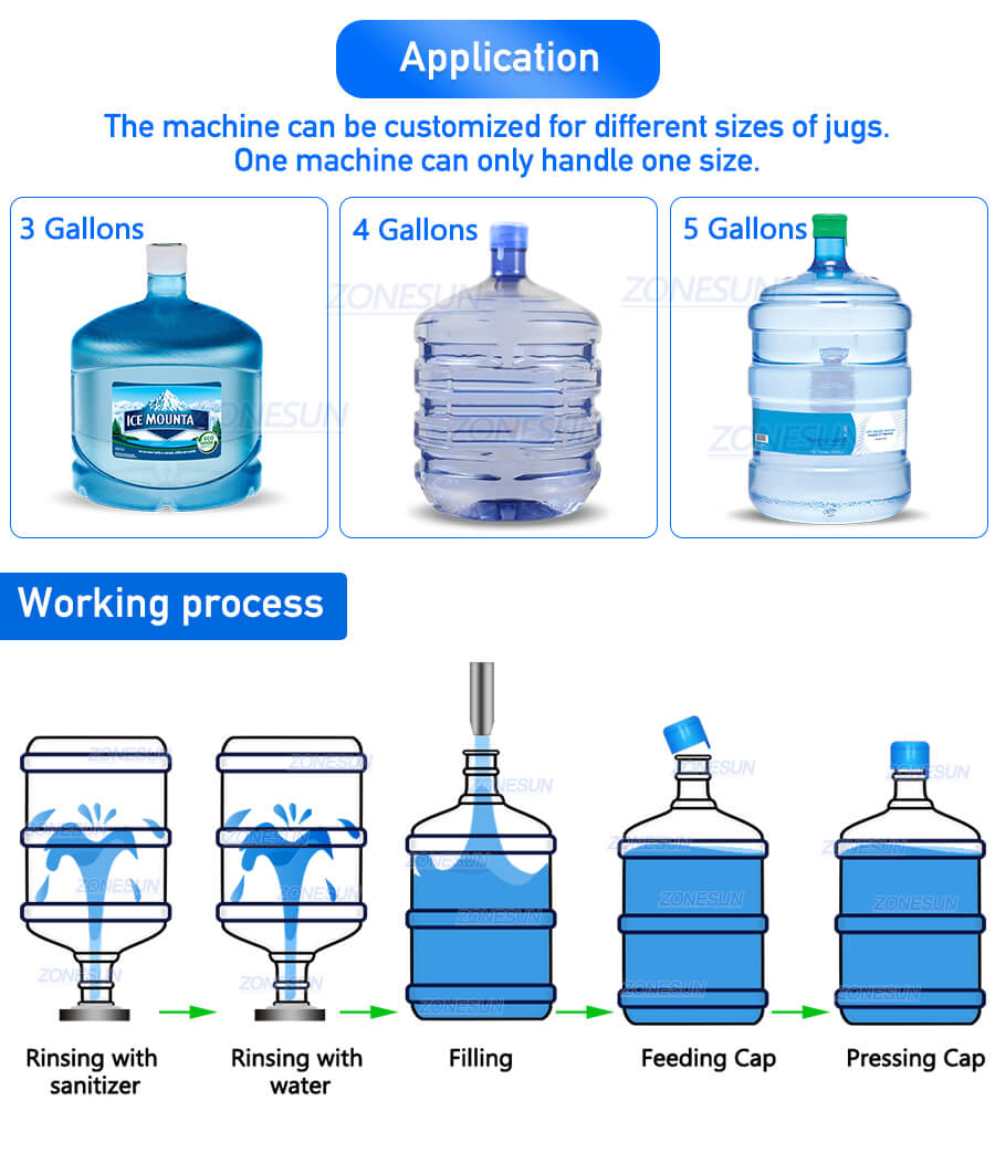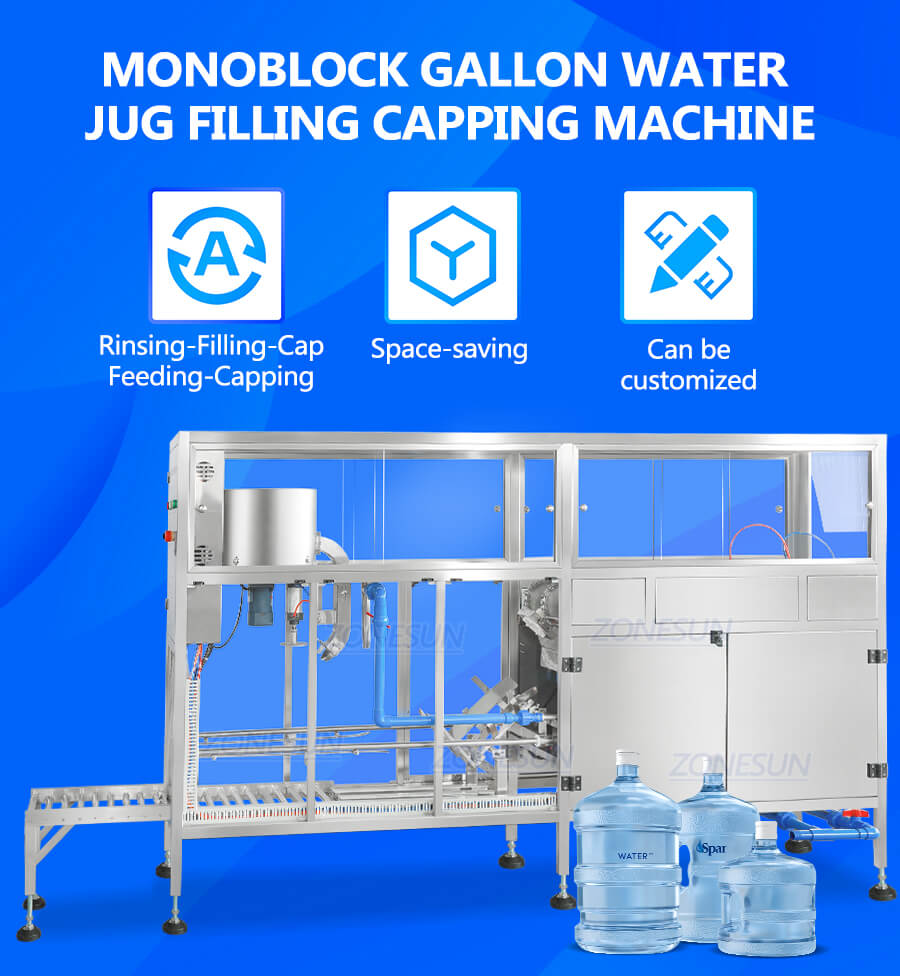 This mineral water jug filling and capping machine can efficiently handle the entire production process, including bottle washing, drying, liquid filling, cap feeding, and pressing. It helps to reduce production costs and ensures consistent packaging for your mineral water jugs.