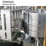 This automatic bottle glue labeling machine is designed for labeling paper label on cans,jars,bottle and any kinds of round container.Operator need to put paper labels into label box,and the machine will label stickers automatically.The wet glue is the resin glue.This machine is mianly for the food,chemical industry.