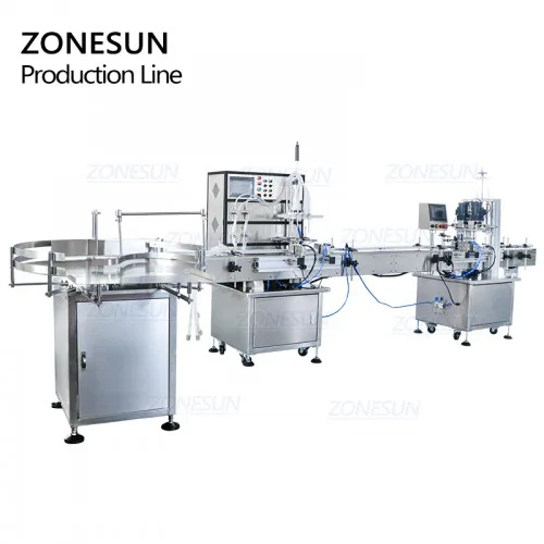 This production line can automatically arrange bottles,fill liquid and cap bottle,it helps to save production process and improve working efficiency.We can offer custom service for different kinds of materials,make these machines can match your material better. It is widely used in food,beverage,cosmetics and pharmaceutical industries