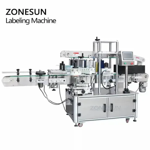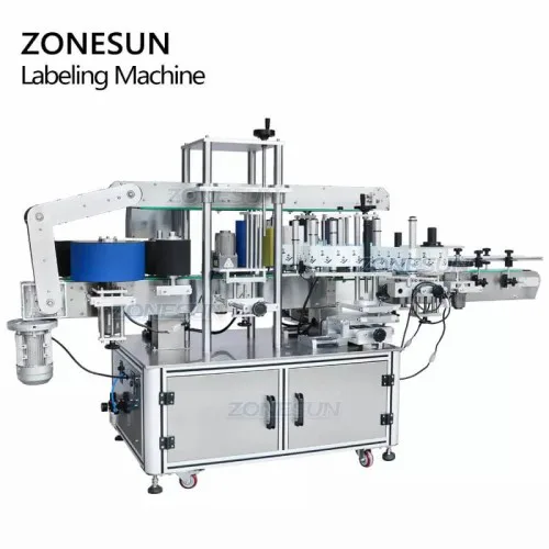 This machine is designed for labeling stickers on double side of round bottles,compared with the positioning labeling machine,this machine is better for long label stickers and can save time on adjusting machine.It is good for beverage,daily chemical,and cosmetics industries.