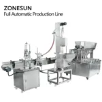 This full automatic production line is consist of filling machine,cap feeding machine and capping machine.It has a high degree of automation,good stability,and convenient adjustment.It is equipped with a cap feeding machine,can automatically feed bottle caps which can save labor greatly.This machine is suitable for food,daily chemical,agriculture and cosmetics industries.